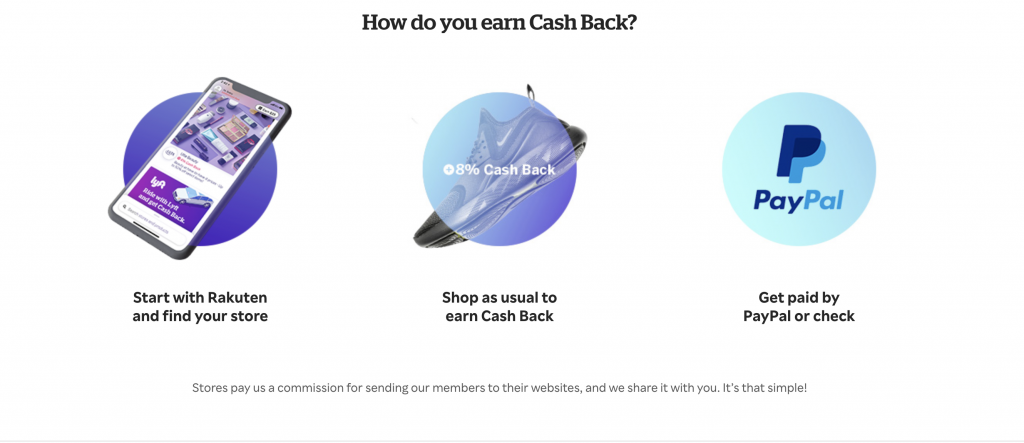 Stores pay Rakuten a commission for referral and they pass some of it onto you. You got to either the Rakuten website or mobile app and use them to link to your store.